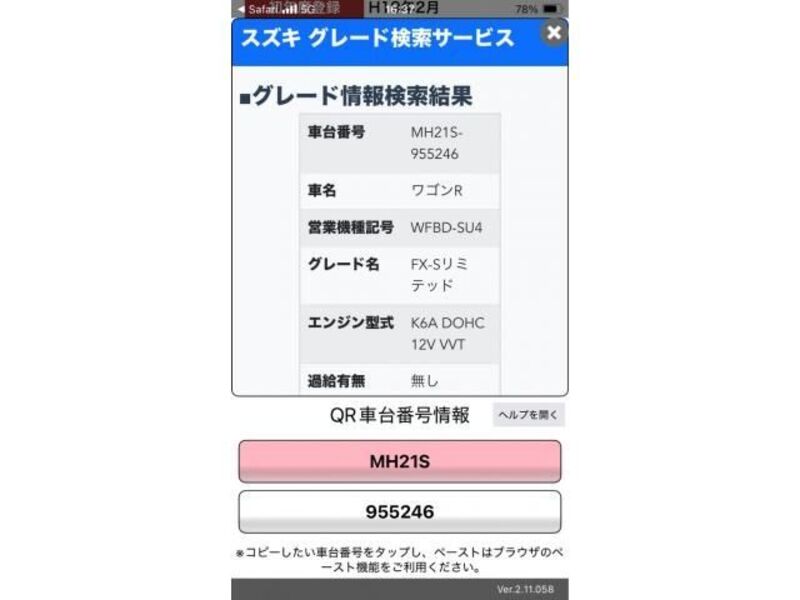 | Body Type | -- | Chassis No | MH21S-9**** | Model Code | DBA-MH21S | Engine model | -- | Steering | Right |