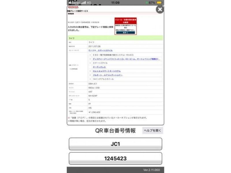 | Body Type | Wagon | Chassis No | JC1-124**** | Model Code | JC1 | Engine model | -- | Steering | -- |