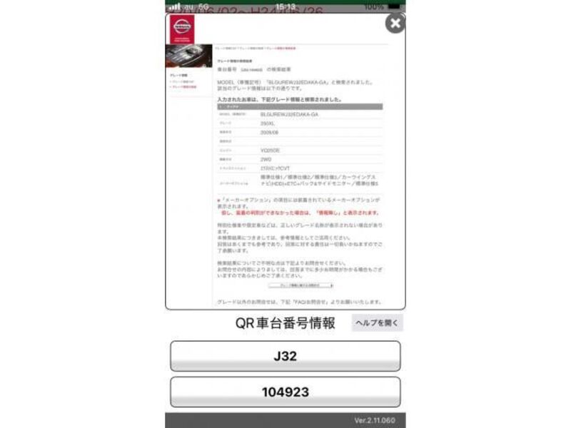| Body Type | Sedan | Chassis No | J32-104**** | Model Code | J32 | Engine model | -- | Steering | -- |