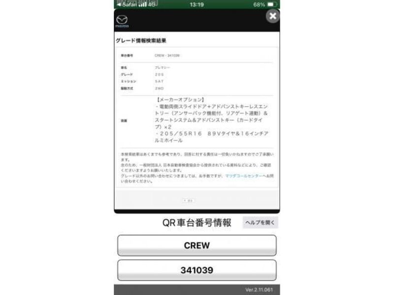 | Body Type | Van | Chassis No | CREW-34**** | Model Code | CREW | Engine model | -- | Steering | -- |