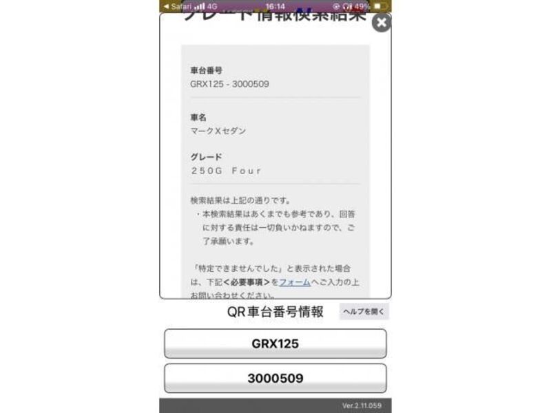 | Body Type | Sedan | Chassis No | GRX125-**** | Model Code | GRX125 | Engine model | -- | Steering | -- |