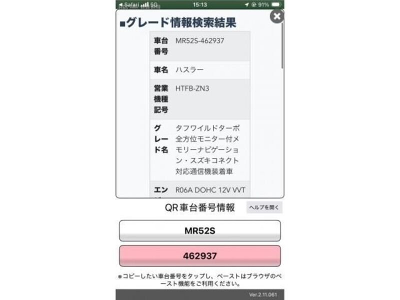 | Body Type | -- | Chassis No | 336994**** | Model Code | MR52S | Engine model | -- | Steering | -- |