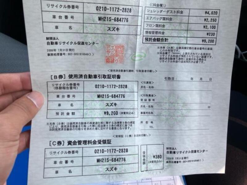 | Body Type | Van | Chassis No | MH21S-8**** | Model Code | MH21S | Engine model | -- | Steering | -- |