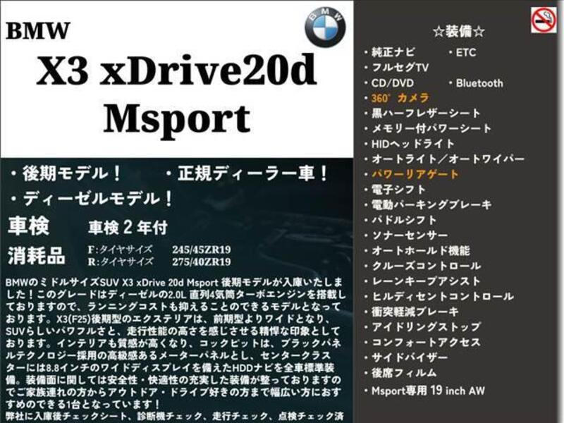 Cette BMW X3 avec le code de modèle WY20 est équipée d'un moteur de 1,990cc à Diesel et a un kilométrage total de 90,000km.