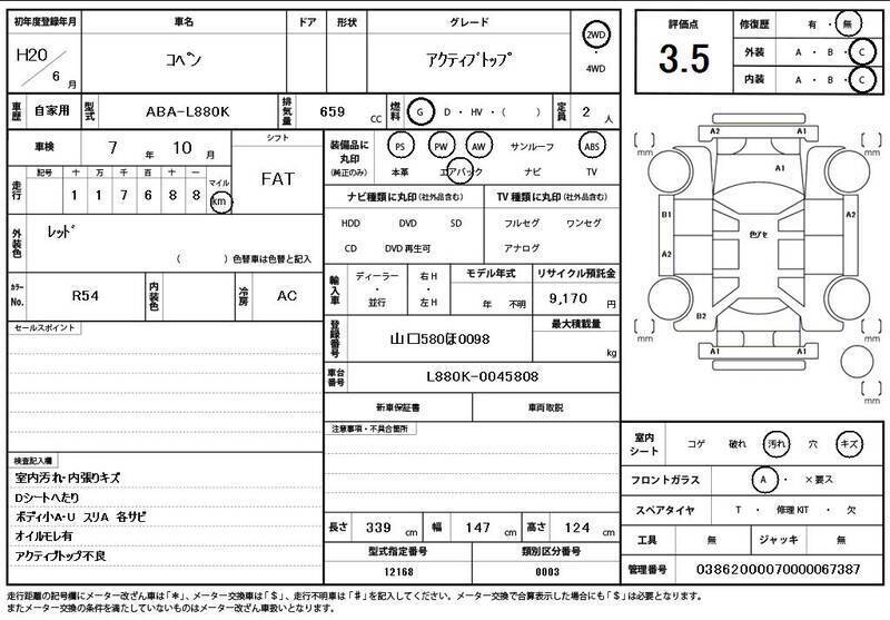 Cette 2008 DAIHATSU COPEN avec le code de modèle L880K est équipée d'un moteur de 659cc à Essence et a un kilométrage total de 118,000km.