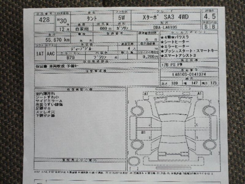 Cette DAIHATSU TANTO avec le code de modèle LA610S est équipée d'un moteur de 660cc à Essence et a un kilométrage total de 55,680km.
