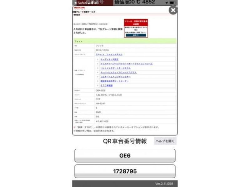 Cette 2013 HONDA FIT avec le code de modèle GE6 est équipée d'un moteur de 1,300cc à Essence et a un kilométrage total de 181,936km.