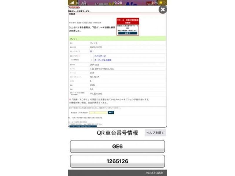 Cette 2009 HONDA FIT avec le code de modèle GE6 est équipée d'un moteur de 1,300cc à Essence et a un kilométrage total de 210,385km.