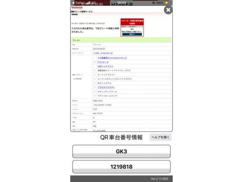 Cette 2016 HONDA FIT avec le code de modèle GK3 est équipée d'un moteur de 1,300cc à Essence et a un kilométrage total de 125,932km.
