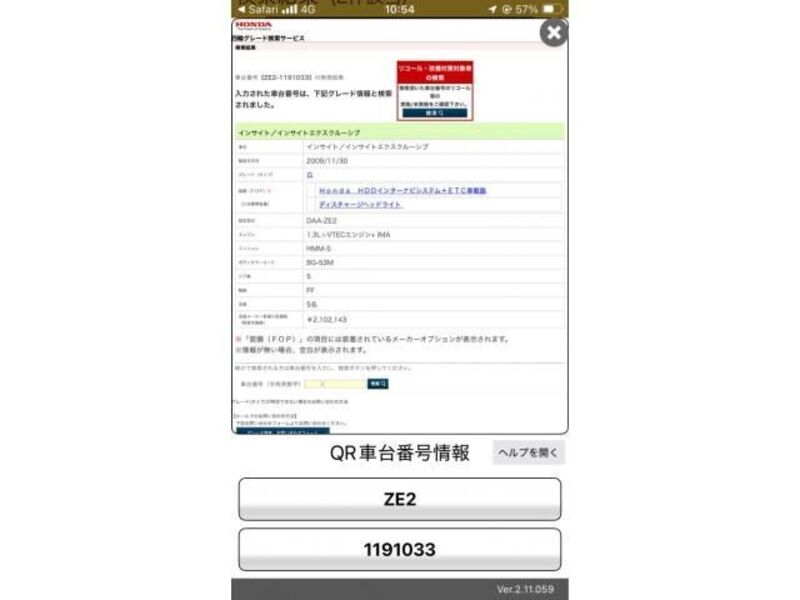 Cette 2009 HONDA INSIGHT avec le code de modèle ZE2 et a un kilométrage total de 171,208km.