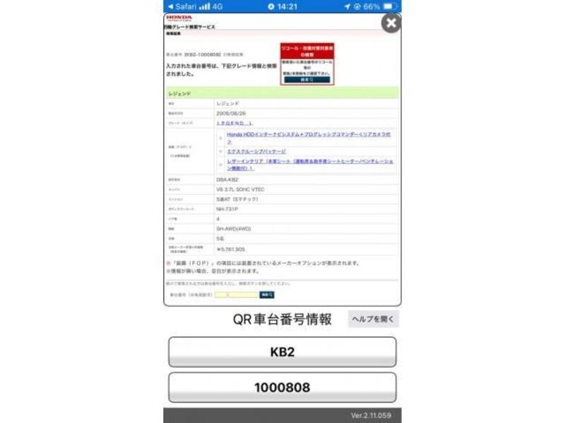 2009 AT HONDA LEGEND KB2