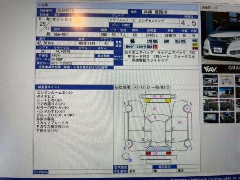 Cette 2017 HONDA ODYSSEY avec le code de modèle DBA-RC1 est équipée d'un moteur de 2,400cc à Essence et a un kilométrage total de 42,000km.