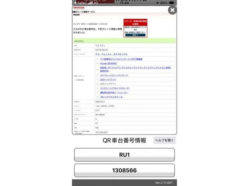 2018 AT HONDA VEZEL RU1