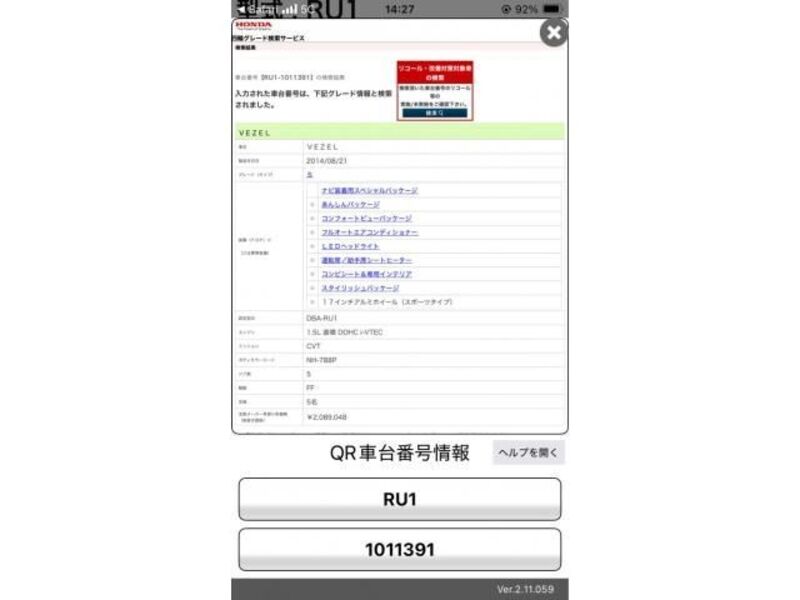 2014 AT HONDA VEZEL RU1