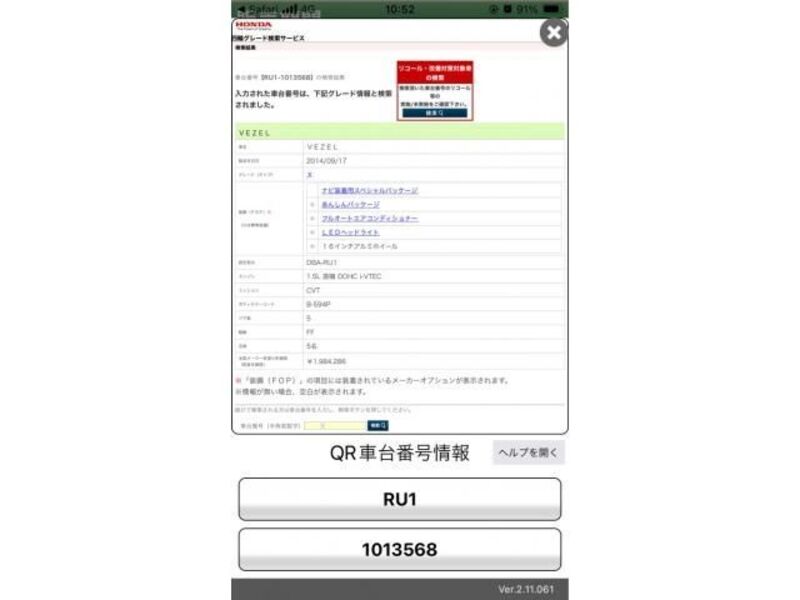 2014 AT HONDA VEZEL RU1