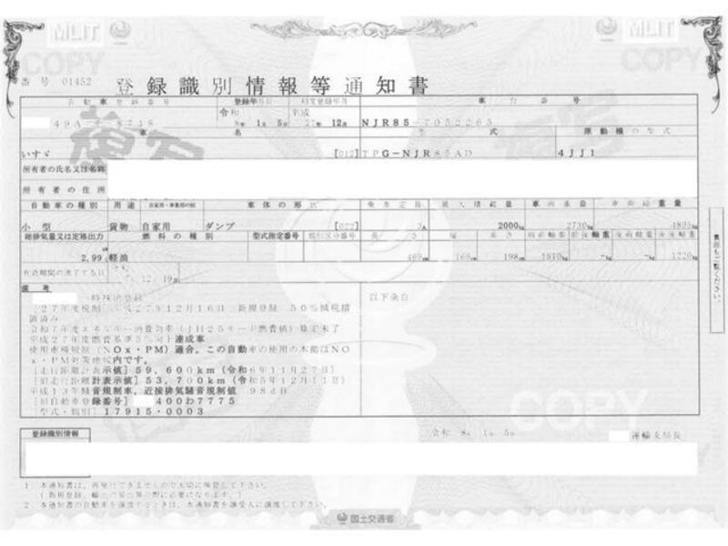 | Chassis No | NJR85-7****Full Chassis No_will be shown on Invoice |