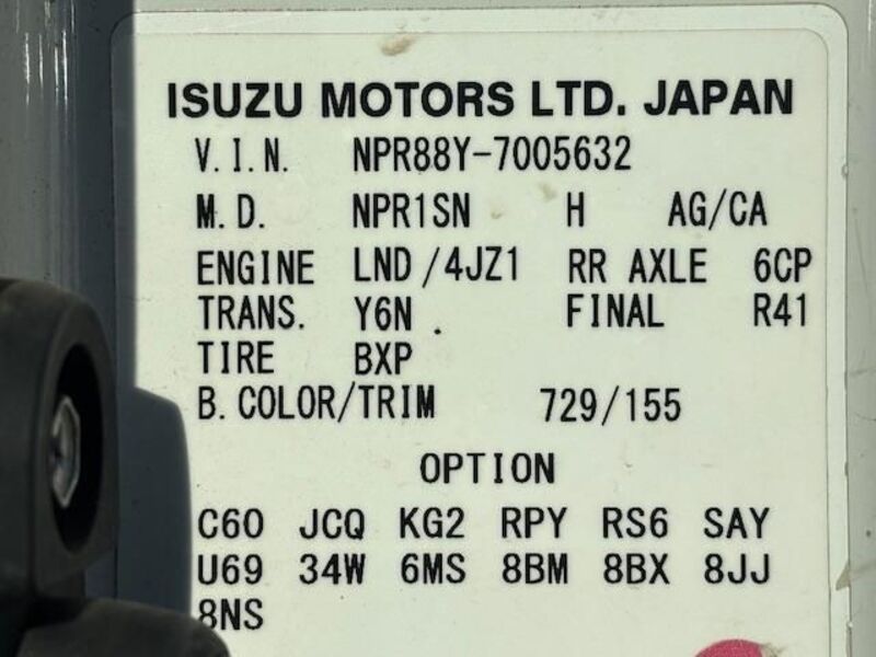 | Chassis No | NPR88Y-****Full Chassis No_will be shown on Invoice |