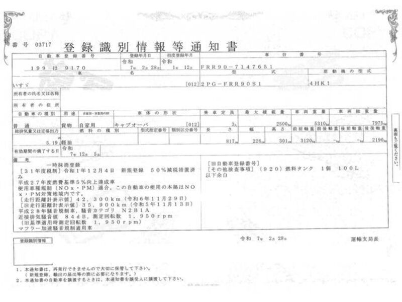 | Chassis No | FRR90-7****Full Chassis No_will be shown on Invoice |