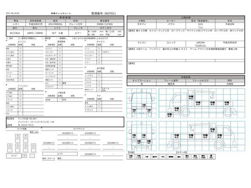 Cette 2018 ISUZU FORWARD avec le code de modèle FRR90S1 est équipée d'un moteur de 5,190cc à Diesel et a un kilométrage total de 40,714km.