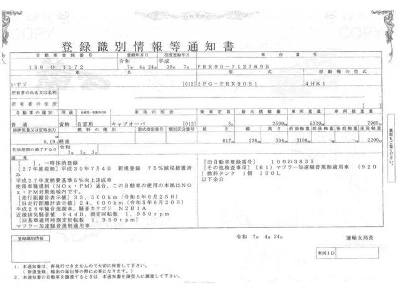 | Chassis No | FRR90-7****Full Chassis No_will be shown on Invoice |