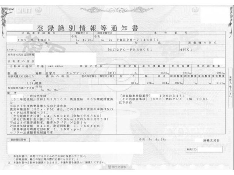 | Chassis No | FRR90-7****Full Chassis No_will be shown on Invoice |