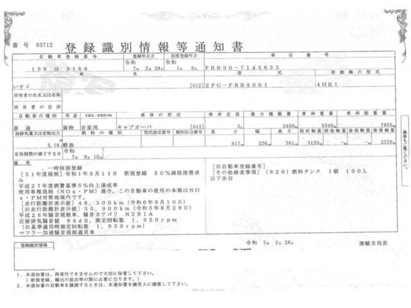 | Chassis No | FRR90-7****Full Chassis No_will be shown on Invoice |