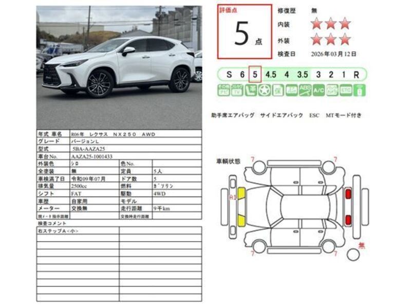 Cette 2024 LEXUS NX avec le code de modèle AAZA25 est équipée d'un moteur de 2,500cc à Essence et a un kilométrage total de 8,620km.