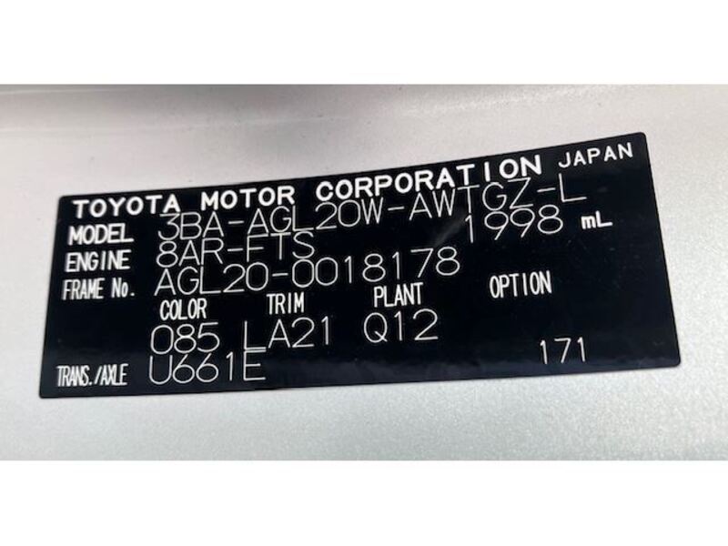 | Chassis No | AGL20-0****Full Chassis No_will be shown on Invoice |