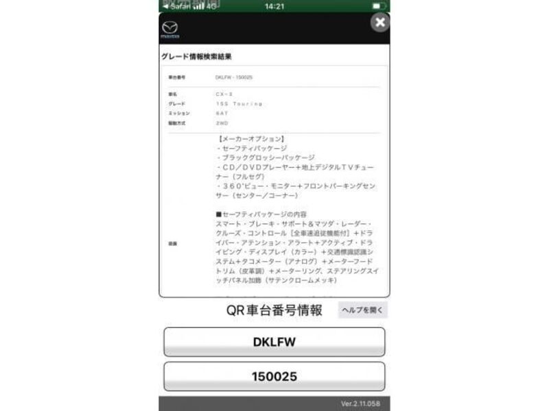 Cette 2021 MAZDA CX-3 avec le code de modèle DKLFW est équipée d'un moteur de 1,500cc à Essence et a un kilométrage total de 13,826km.
