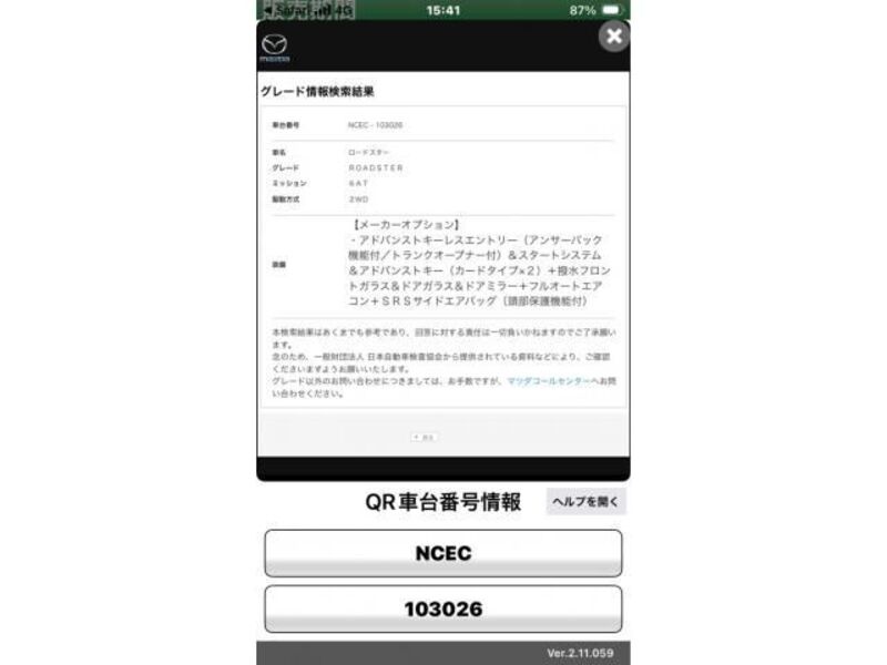 Cette 2005 MAZDA ROADSTER avec le code de modèle NCEC est équipée d'un moteur de 2,000cc à Essence et a un kilométrage total de 102,833km.