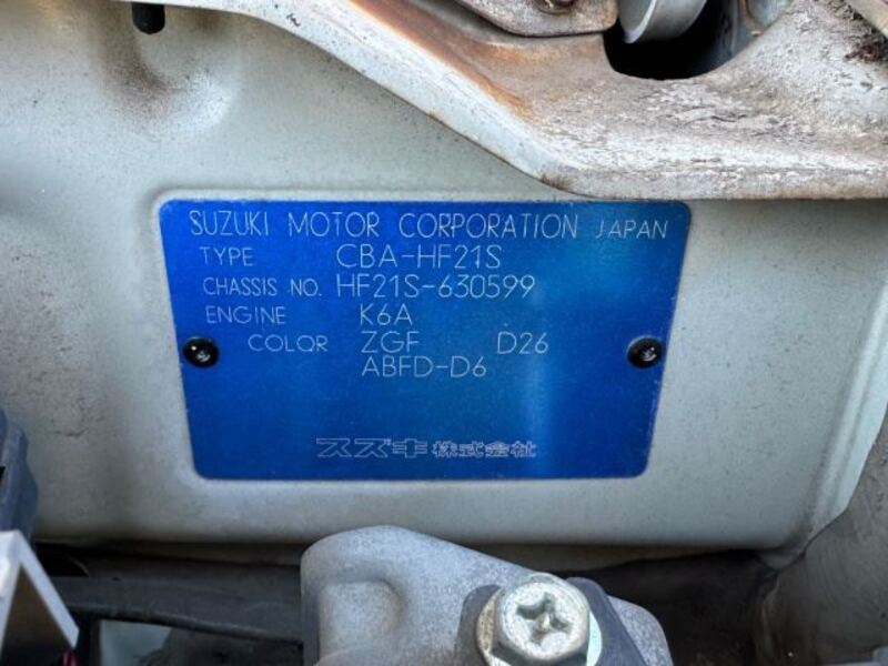 | Chassis No | HF21S-6****Full Chassis No_will be shown on Invoice |