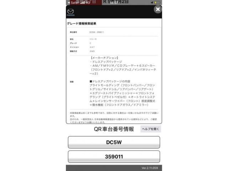 Cette 2012 MAZDA VERISA avec le code de modèle DC5W est équipée d'un moteur de 1,500cc à Essence et a un kilométrage total de 125,355km.