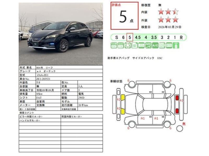Cette 2022 NISSAN LEAF avec le code de modèle ZE1 est équipée d'un moteur de 85cc à Électrique et a un kilométrage total de 19,999km.
