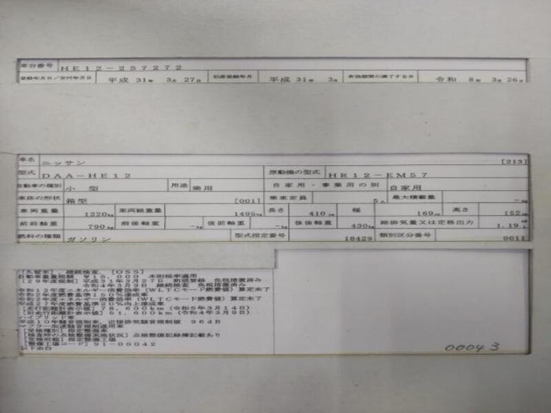 Cette 2019 NISSAN NOTE avec le code de modèle DAA-HE12 et a un kilométrage total de 141,831km.