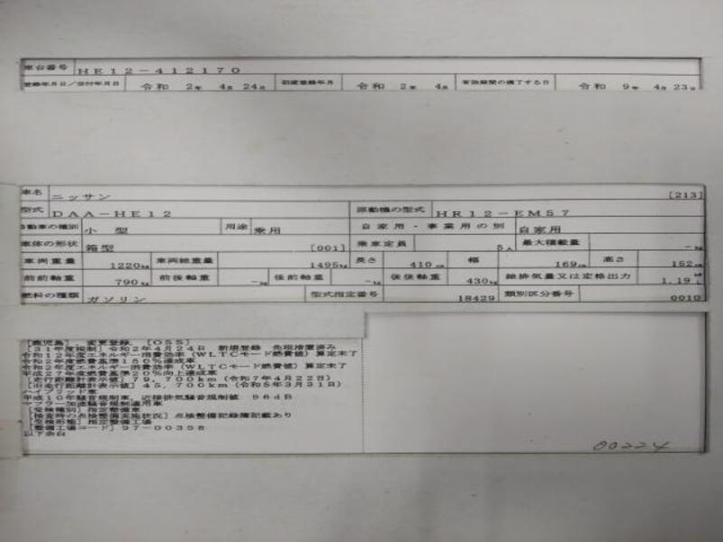 Cette 2020 NISSAN NOTE avec le code de modèle DAA-HE12 et a un kilométrage total de 94,407km.