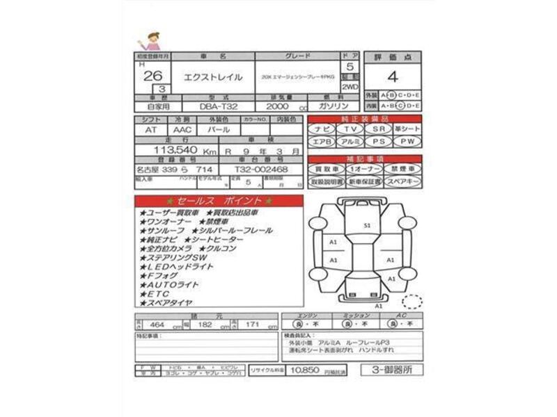 Cette NISSAN X-TRAIL avec le code de modèle T32 est équipée d'un moteur de 2,000cc à Essence et a un kilométrage total de 113,540km.