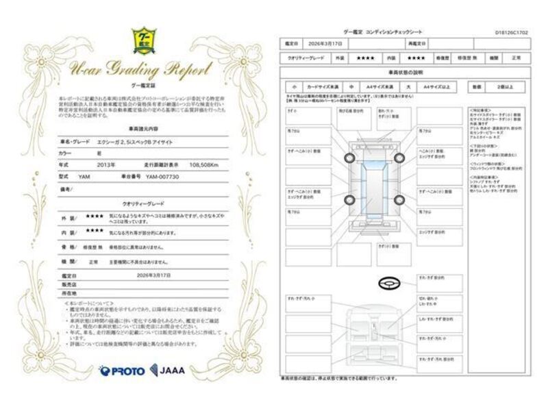 Cette 2013 SUBARU EXIGA avec le code de modèle YAM est équipée d'un moteur de 2,500cc à Essence et a un kilométrage total de 108,600km.