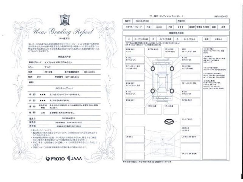 Cette 2012 SUBARU IMPREZA avec le code de modèle VM4 et a un kilométrage total de 81,000km.