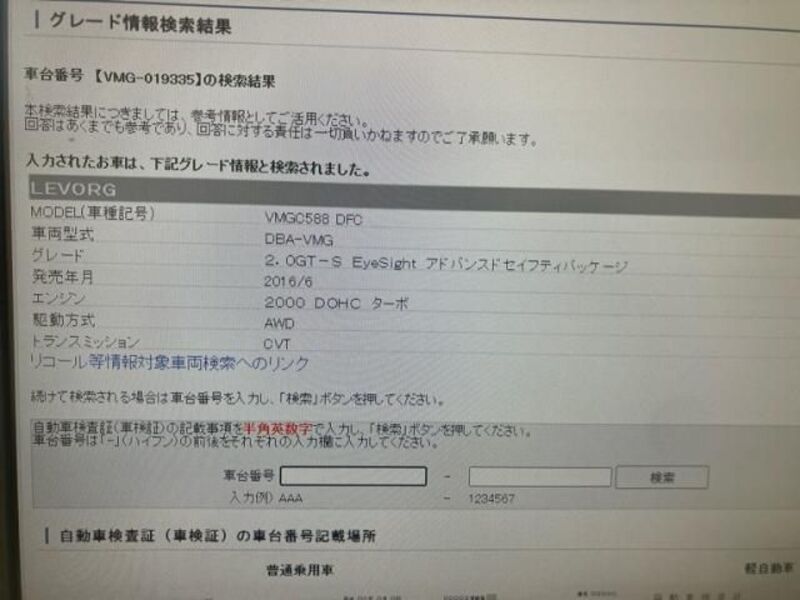 Cette 2016 SUBARU LEVORG avec le code de modèle VMG est équipée d'un moteur de 2,000cc à Essence et a un kilométrage total de 71,077km.