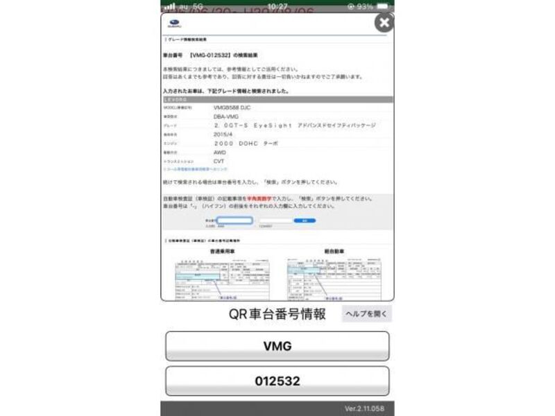Cette 2015 SUBARU LEVORG avec le code de modèle VMG est équipée d'un moteur de 2,000cc à Essence et a un kilométrage total de 112,322km.