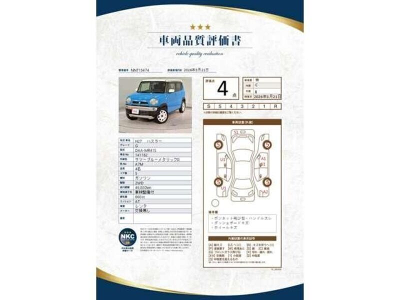 Cette 2015 SUZUKI HUSTLER avec le code de modèle MR41S et a un kilométrage total de 49,000km.