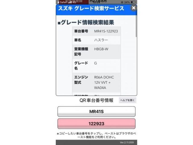 | Chassis No | MR41S-1****Full Chassis No_will be shown on Invoice |