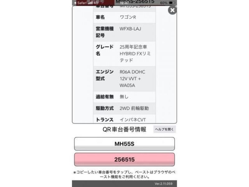 | Type de carrosserie | -- | Numéro de châssis | MH23S-6**** | Code de modèle | MH23S | Modèle de moteur | -- | Volant | -- |