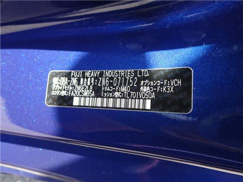 | Chassis No | ZN6-071****Full Chassis No_will be shown on Invoice |