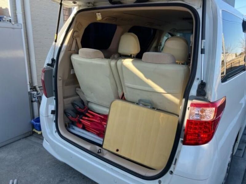 This is a Toyota 8-seat large minivan, seating up to seven (7) or eight (8) people. The interior offers ample room which provides luxurious relaxation. The step into the car is wide and low, which makes it easy to get in and out of the rear seats. The luggage space has ample space, and the seats can be re-arranged so that luggage can be stored.