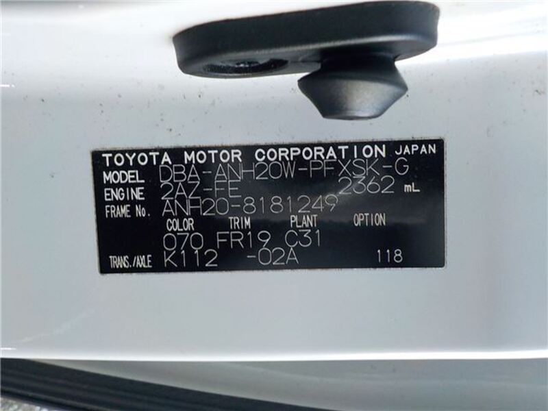 | Chassis No | ANH20-8****Full Chassis No_will be shown on Invoice |