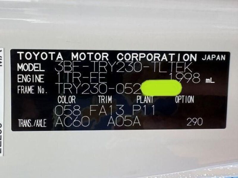 | Chassis No | TRY230-****Full Chassis No_will be shown on Invoice |