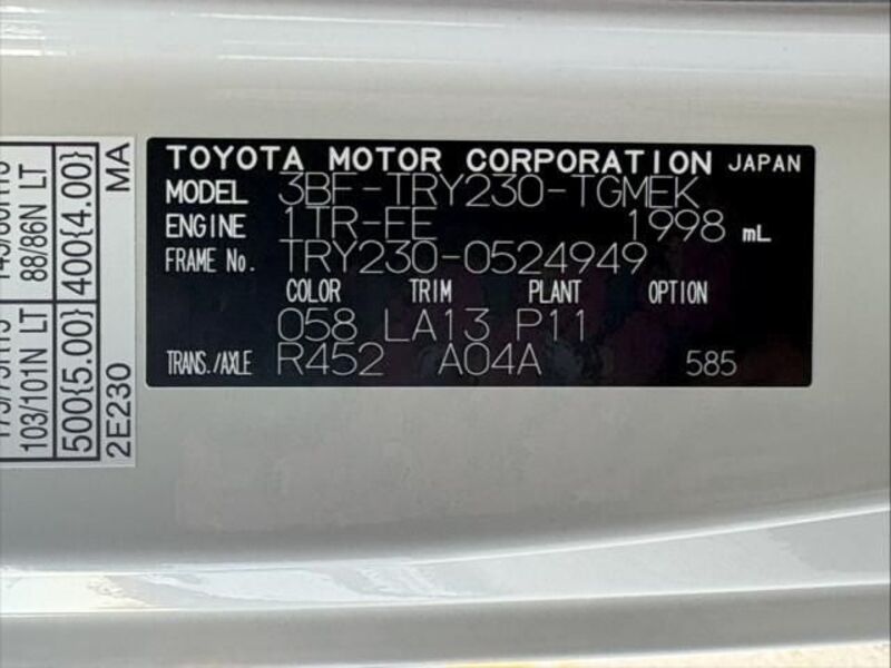 | Chassis No | TRY230-****Full Chassis No_will be shown on Invoice |