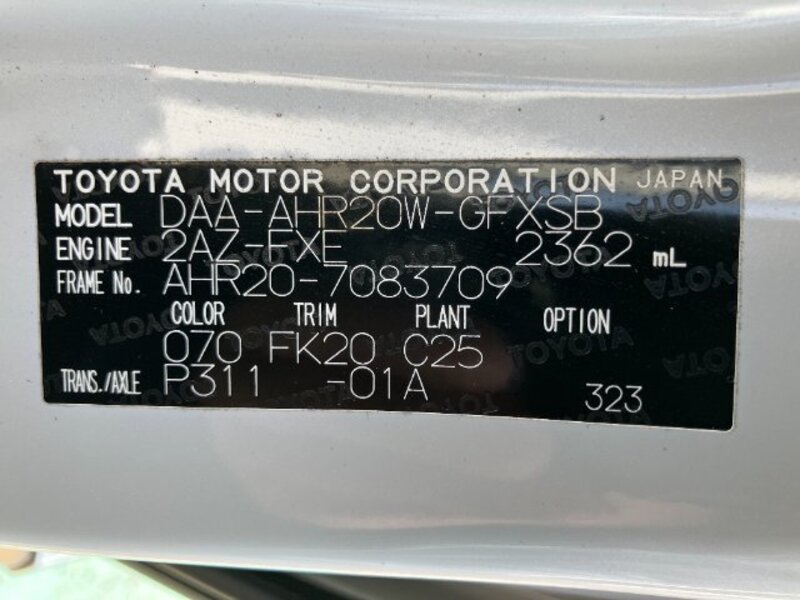 | Chassis No | AHR20W-****Full Chassis No_will be shown on Invoice |