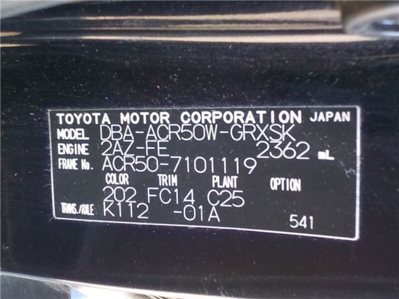 | Chassis No | ACR50-7****Full Chassis No_will be shown on Invoice |